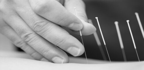 Doctor uses needles for treatment of the patient. acupuncture needles. alternative healthcare